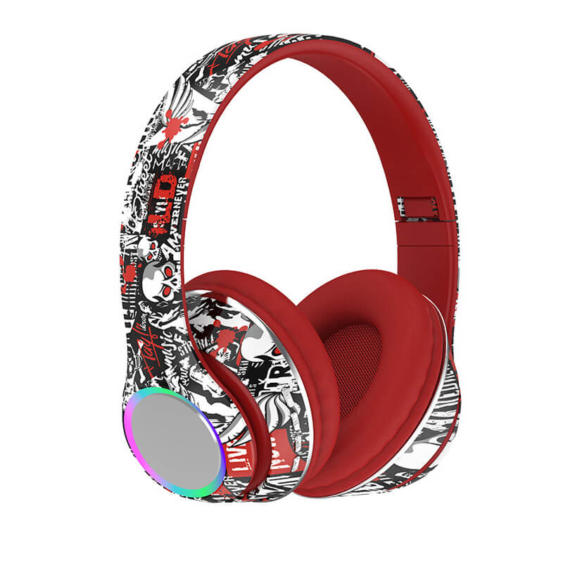 Graffiti Foldable Bluetooth 5.4 Headphones with LED Light & FM Radio